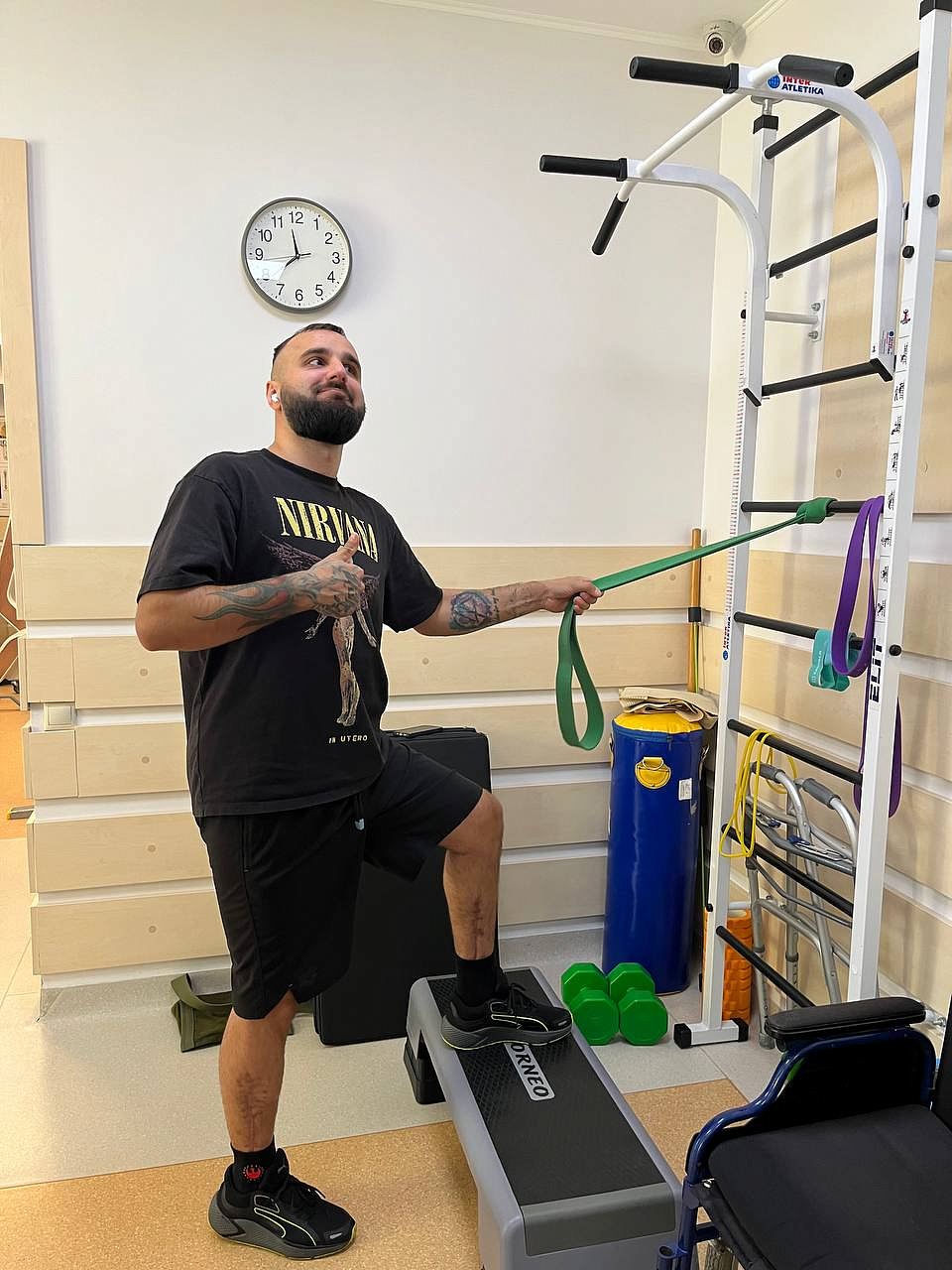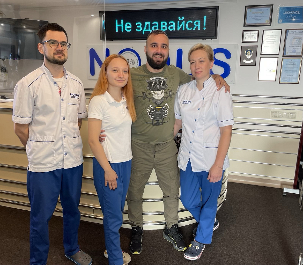 В рамках Меморандуму №5275 від 12.04.2021 між Міністерством Оборони України та ТОВ "НПЦНР "Нодус" про спільні заходи щодо реабілітації військовослужбовців ЗСУ та відповідно до Благодійного проекту "Нодус", пацієнту була розроблена відповідна індивідуальна програма реабілітації, і впроваджена на базі клініки.